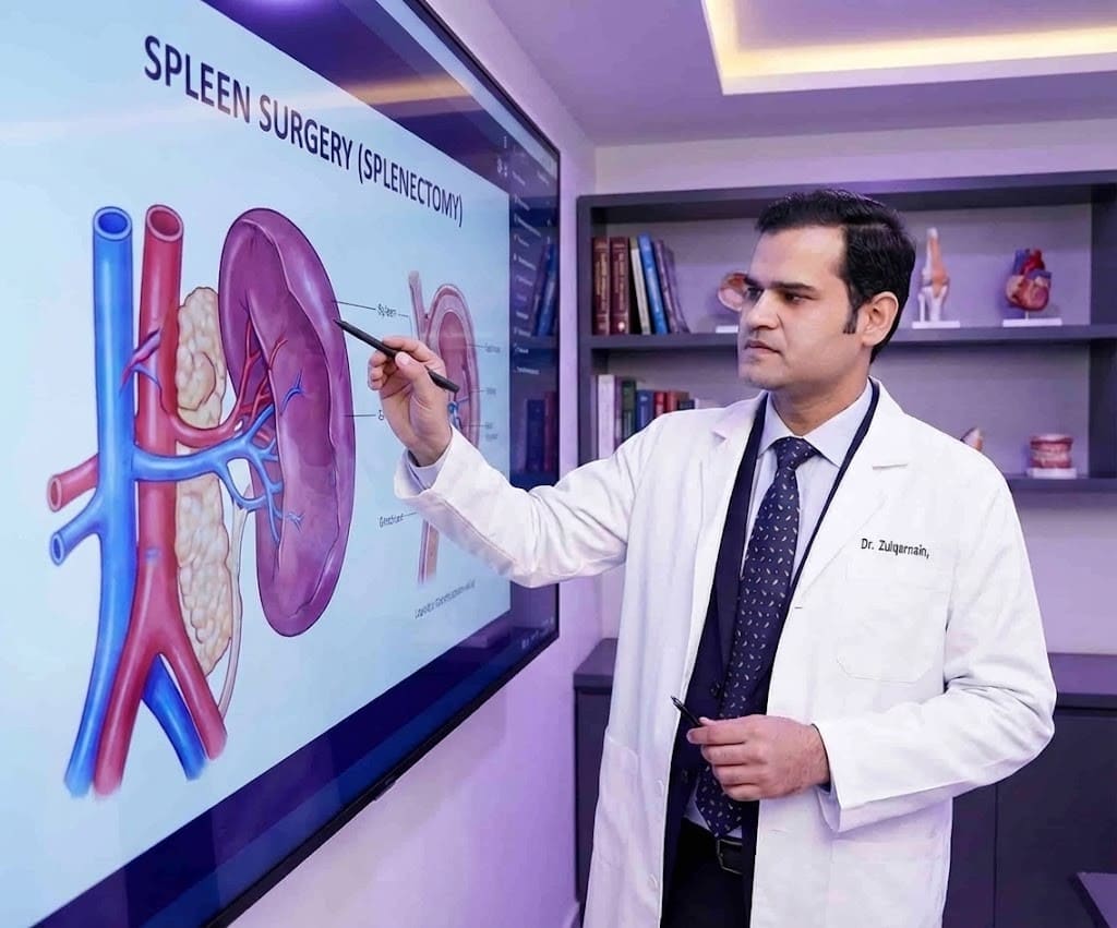 When the patients feel a complex spleen issue where their abdomen starts having pain, these may be the signs of spleen cancer. Hence, finding a skilled spleen specialist surgeon in Pakistan becomes crucial. In medical terms, we know spleen surgery as splenectomy. A complex and specialized procedure that requires a trained HPB surgeon for spleen surgery. Dr. Zulqarnain Hyidar offers advanced surgical procedures for patients in Lahore and the whole of Pakistan, with international patients also.
